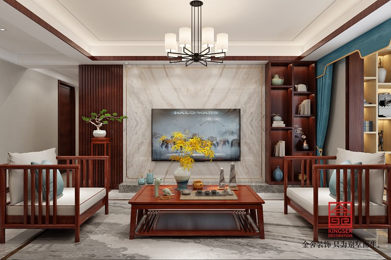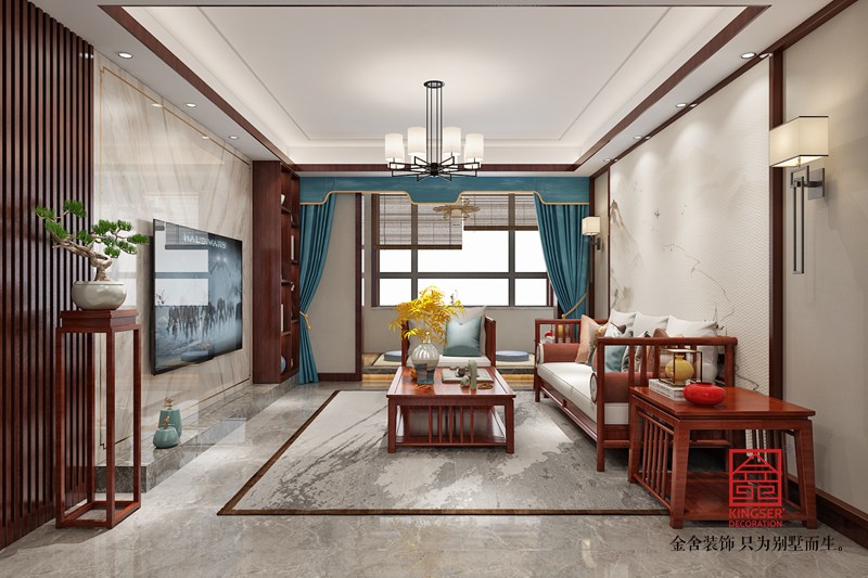 設(shè)計(jì)說明:此案例為石家莊金舍裝飾-東南智匯城132平米新中式風(fēng)格裝修圖。新中式風(fēng)格,既是中國傳統(tǒng)風(fēng)格文化與現(xiàn)代時(shí)尚元素的融合與碰撞,又是在中國當(dāng)代文化理解基礎(chǔ)上的現(xiàn)代設(shè)計(jì)。因?yàn)樯罘绞降霓D(zhuǎn)變,整體在向現(xiàn)代靠攏,運(yùn)用簡單的直線條使空間凸顯層次感,加之主人的個(gè)人喜好和品味,完成符合現(xiàn)代人的新中式。沒有太多的造型修飾,利用吊頂來區(qū)分各個(gè)區(qū)域的功能定位,運(yùn)用軟裝搭配,提升整體的氛圍及品質(zhì)。